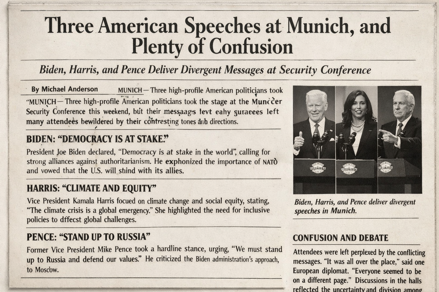 Three American Speeches at Munich, and Plenty of Confusion